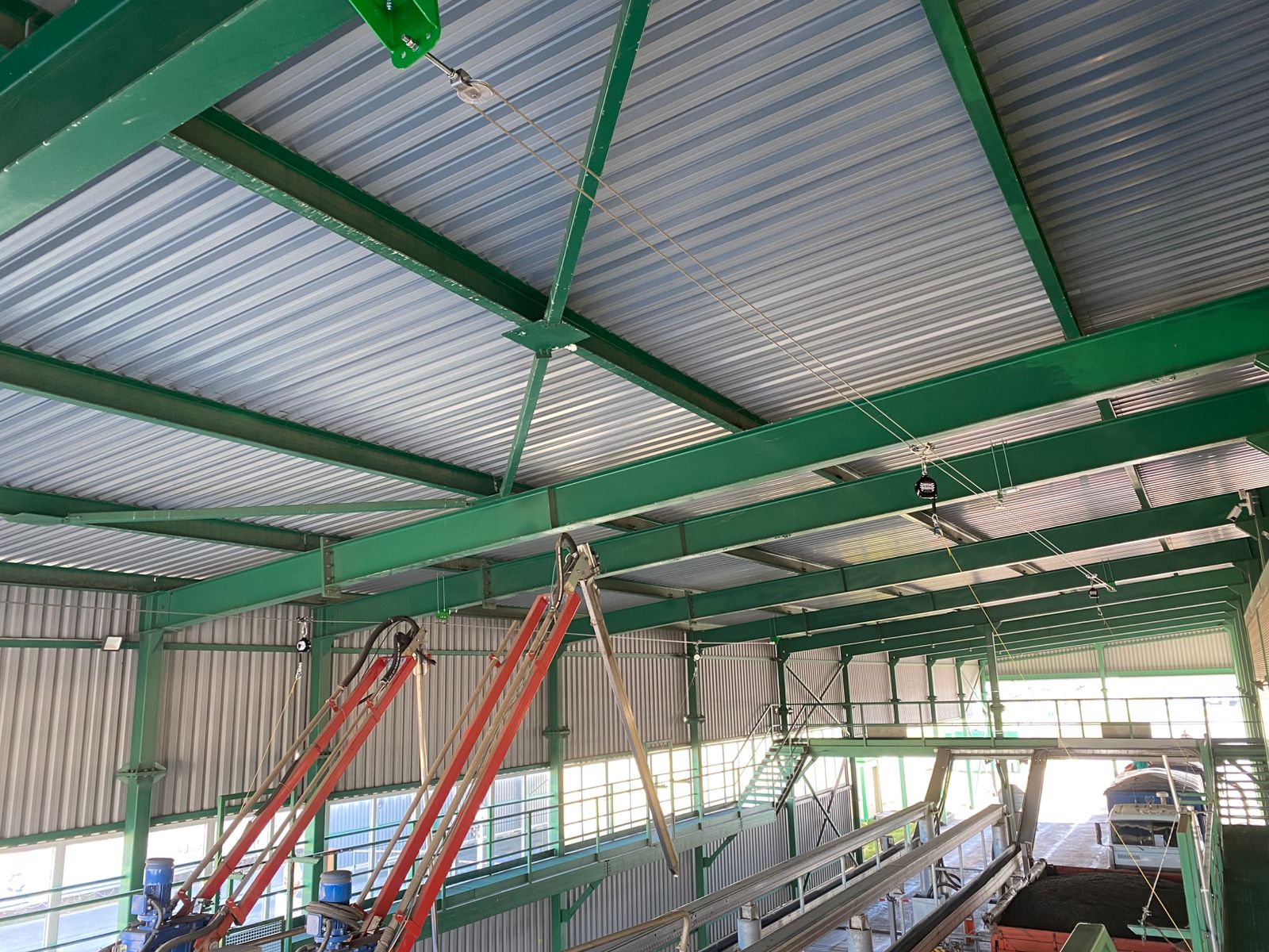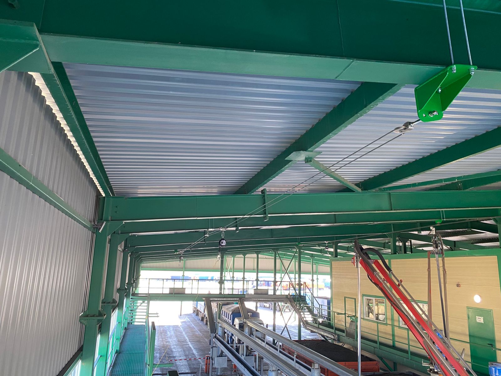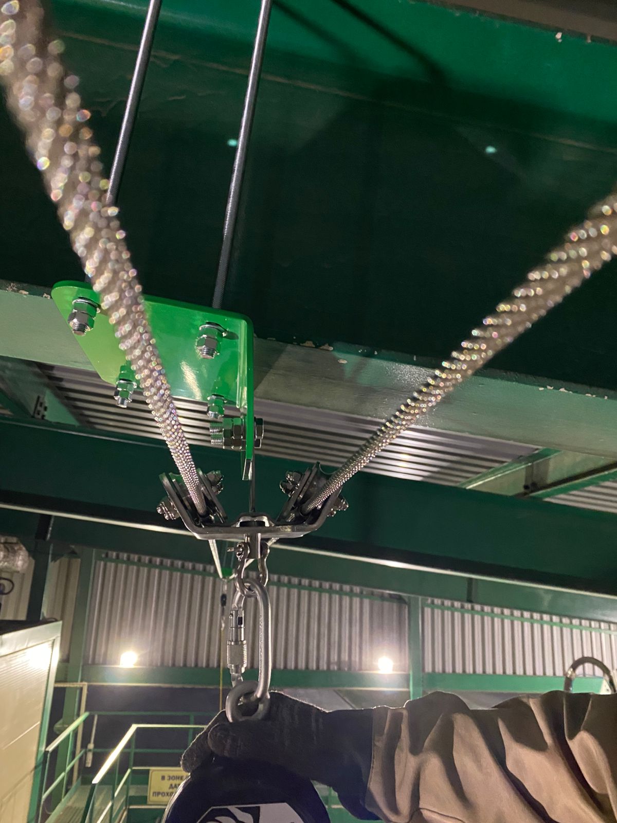 В данном проекте мы установили сертифицированную двухтросовую анкерную линию типа С с фактором падения 0 ("над головой"). Ее ключевое преимущество перед однотросовыми аналогами - свобода перемещения:- Симметричное расположение конструкции промежуточных и подвижных анкерных точек позволяет каретке анкерной линии плавно перемещаться даже при любом отклонении работника влево или вправо.