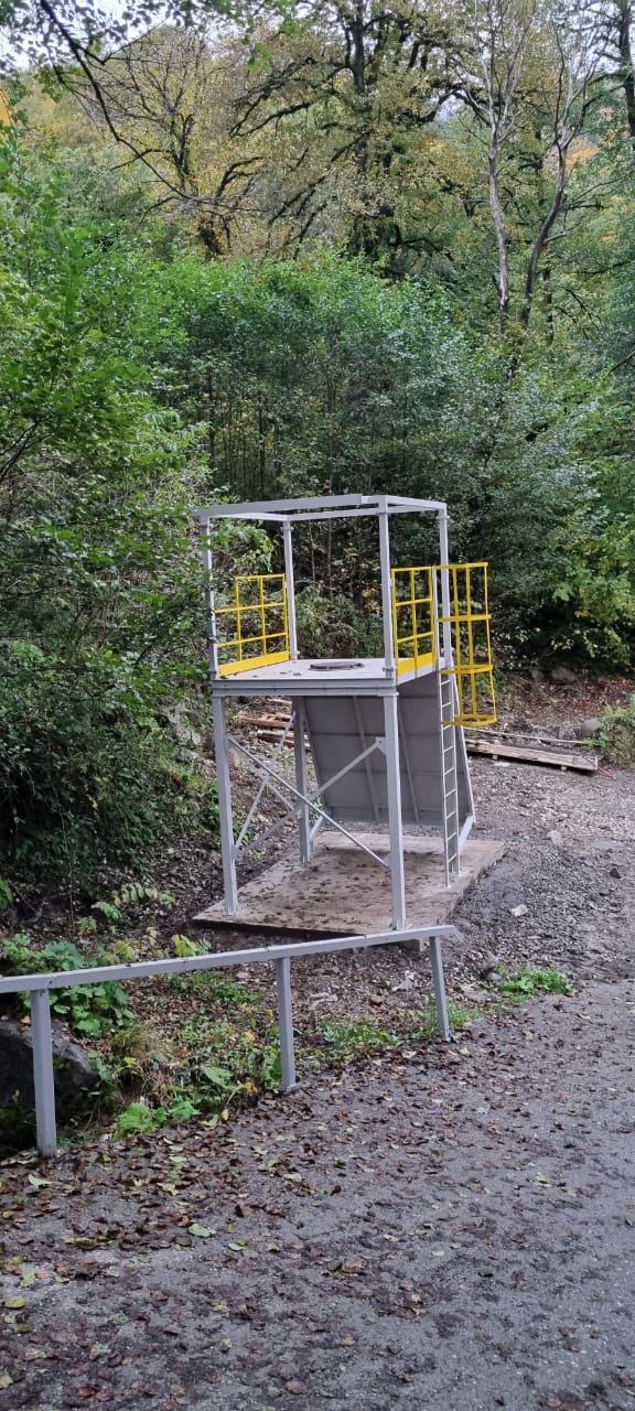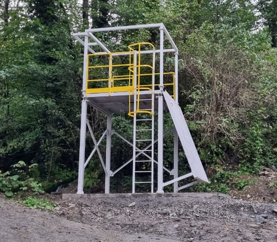 Особенности работ: Требовалось разработать и спроектировать индивидуальную конструкцию учебного полигона для работ на высоте. В отличие от большинства предприятий, где работы на высоте выполняются на кровле, на подкрановых путях, опорах, полувагонах, авто- и железнодорожных цистернах и т.д., в данном случае работники заказчика выполняют работу на горных склонах, в связи с чем было необходимо сделать имитацию относительно крутого склона.