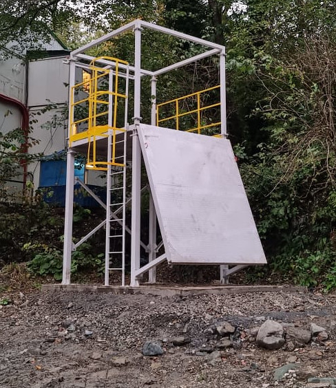 Такие работы связаны с риском падения с высоты и выполняются с применением СИЗ от падения с высоты, в том числе с применением систем канатного доступа. В связи с этим, нами было предложено решение по обустройству учебно-тренировочного полигона для работ на высоте, который позволяет отработать применение систем канатного доступа как в безопорном положении, так и на крутом склоне, который имитируется круто наклонной поверхностью.