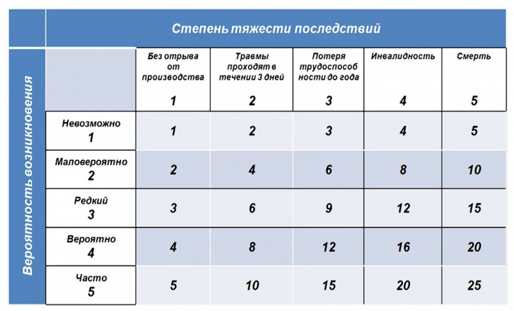Фактор риска до 5 — это незначительный риск. Он мал и мероприятия по его снижению не требуются. Фактор риска от 6 до 9 — это умеренный риск. В таком случае, скорее всего, не требуются моментальные действия, но должны быть спланированы мероприятия по дальнейшему снижению риска. В случае, если фактор риска у нас варьируется от 10 до 15, этот риск является значительным, и мы в обязательном порядке должны его снижать. Мероприятия необходимо начинать срочно, и работа в условиях риска должна быть немедленно прекращена. Фактор риска от 16 до 25 — это не допустимый риск. Необходимо провести мероприятия по его ликвидации. Мероприятия необходимо начинать срочно, и работы в условиях таких рисков должны быть немедленно прекращены.