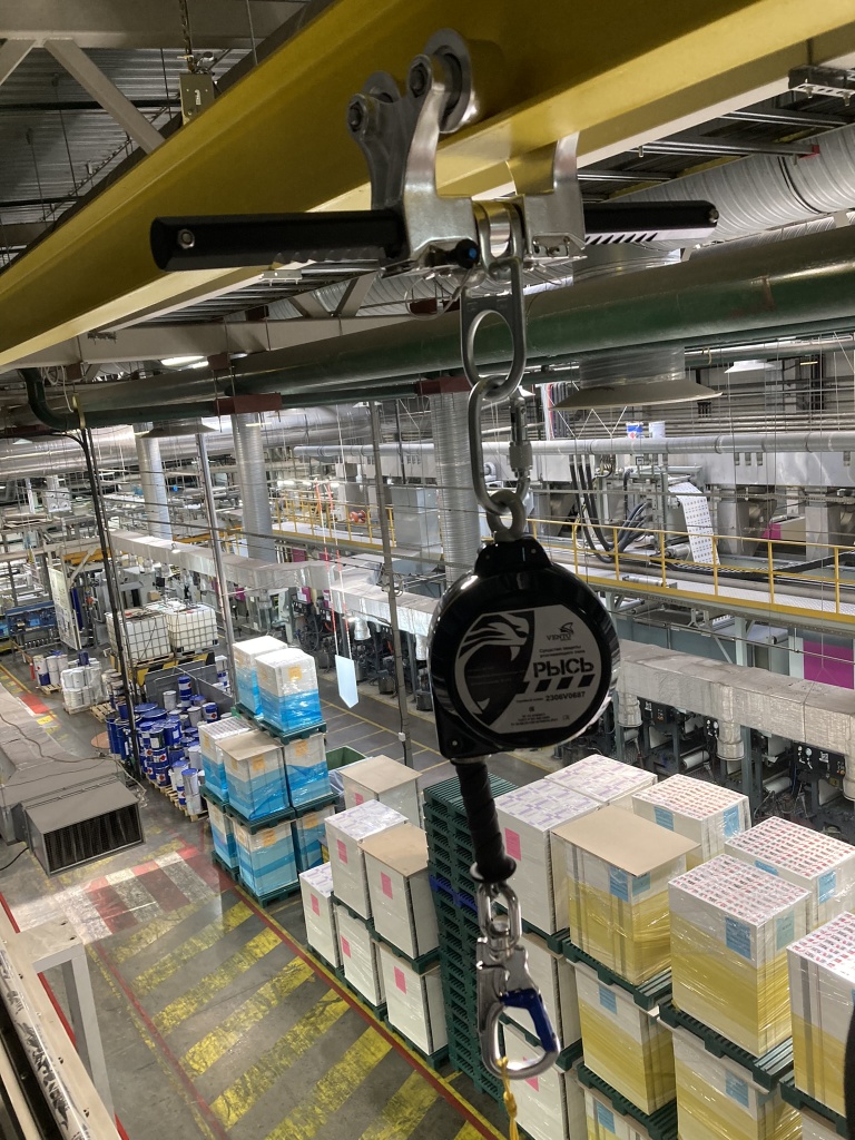 - Выполнить установку средства защиты втягивающего типа к анкерному устройству типа В.