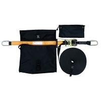 Временная анкерная линия HS-AE320 состоит из текстильной анкерной линии, устройства регулировки натяжения, двух карабинов и интегрированной сумки для хранения и транспортирования. Концы анкерной линии сшиты таким образом, что образуют соединительные петли, в которые установлены карабины.