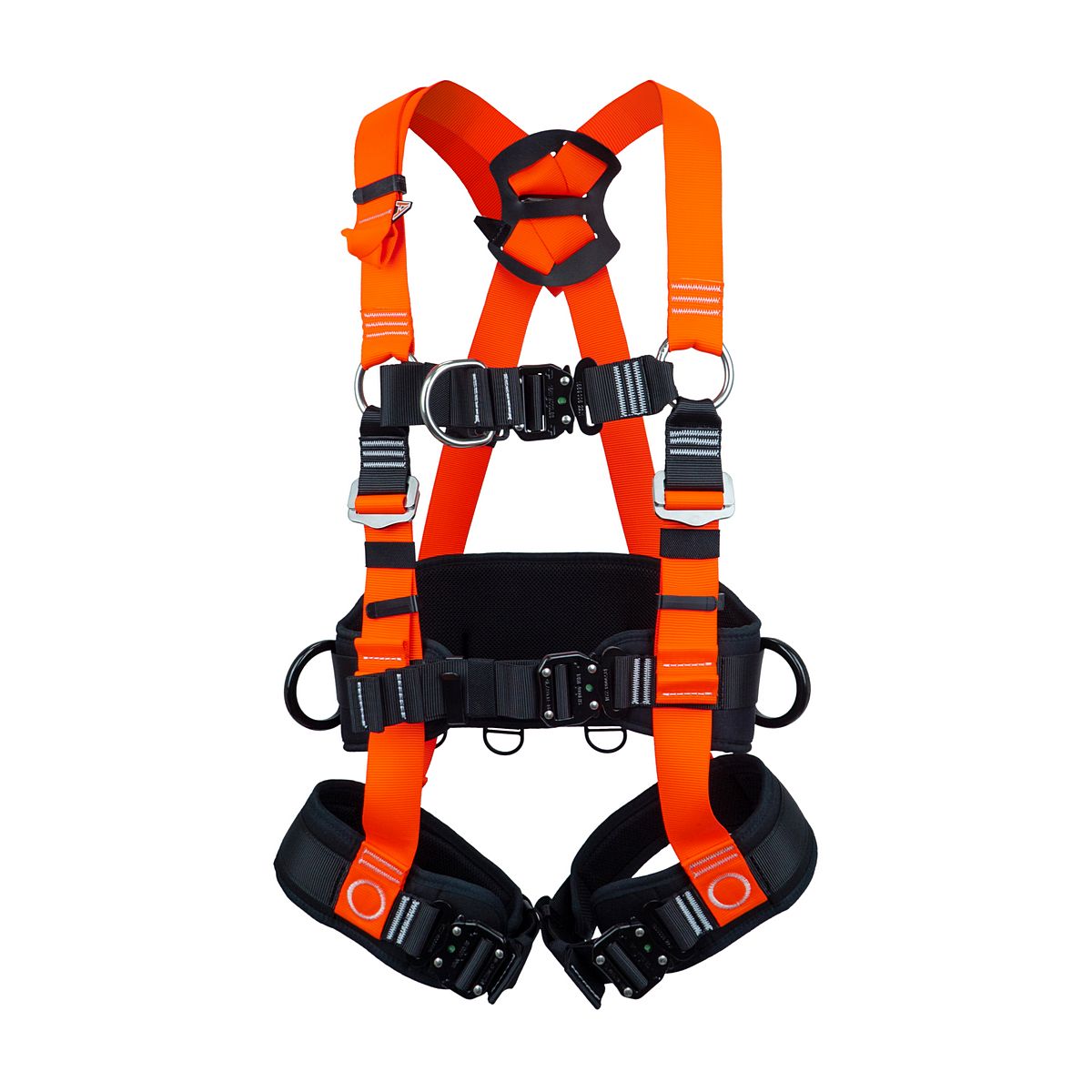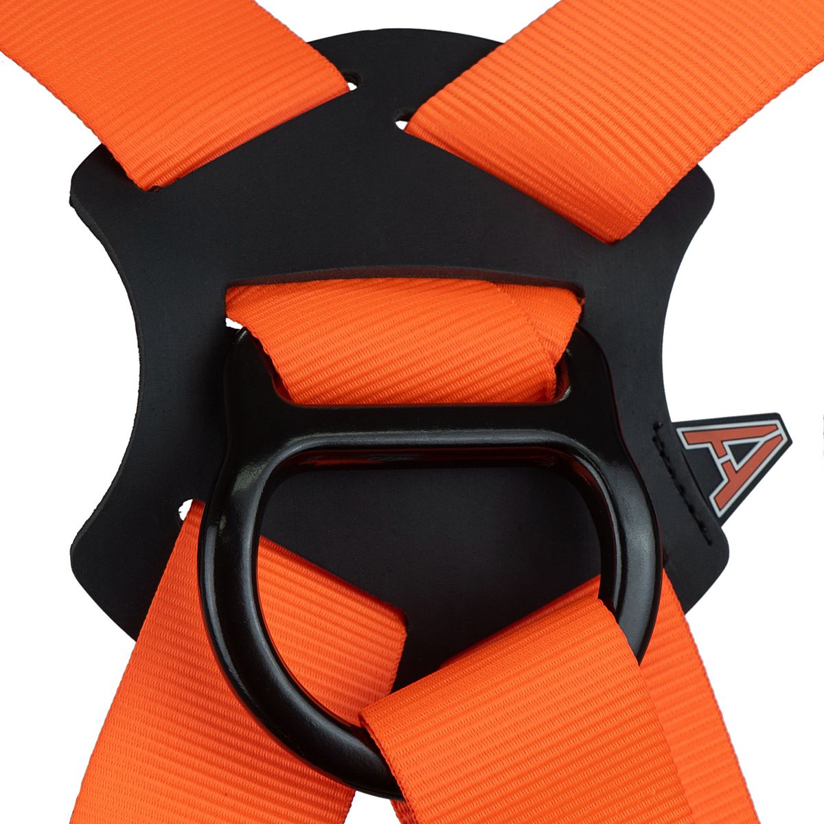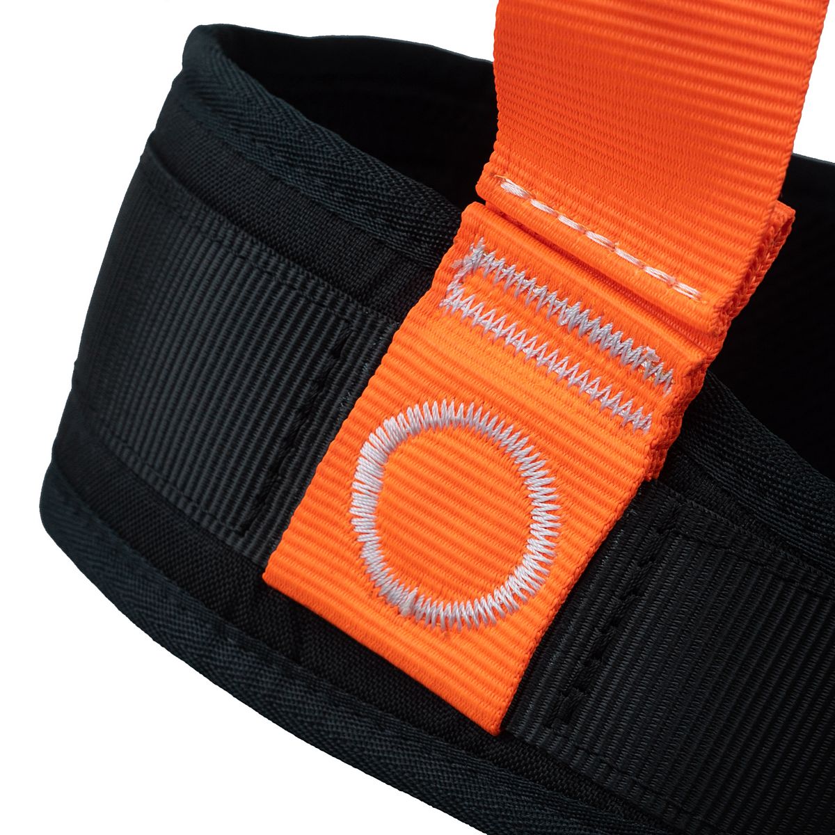- разный цвет лямок для идентификации верха и низа привязи (флуоресцентный оранжевый - верх привязи, черный - её низ);