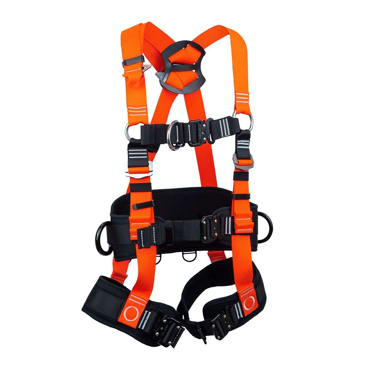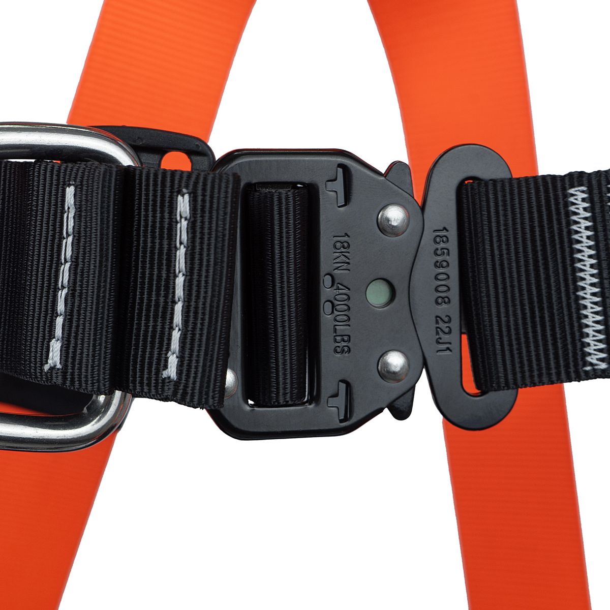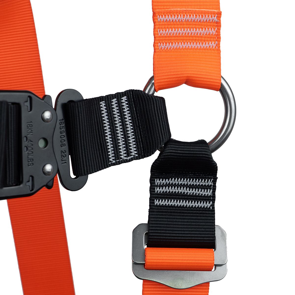 - разный цвет лямок для идентификации верха и низа привязи (флуоресцентный оранжевый - верх привязи, черный - её низ);