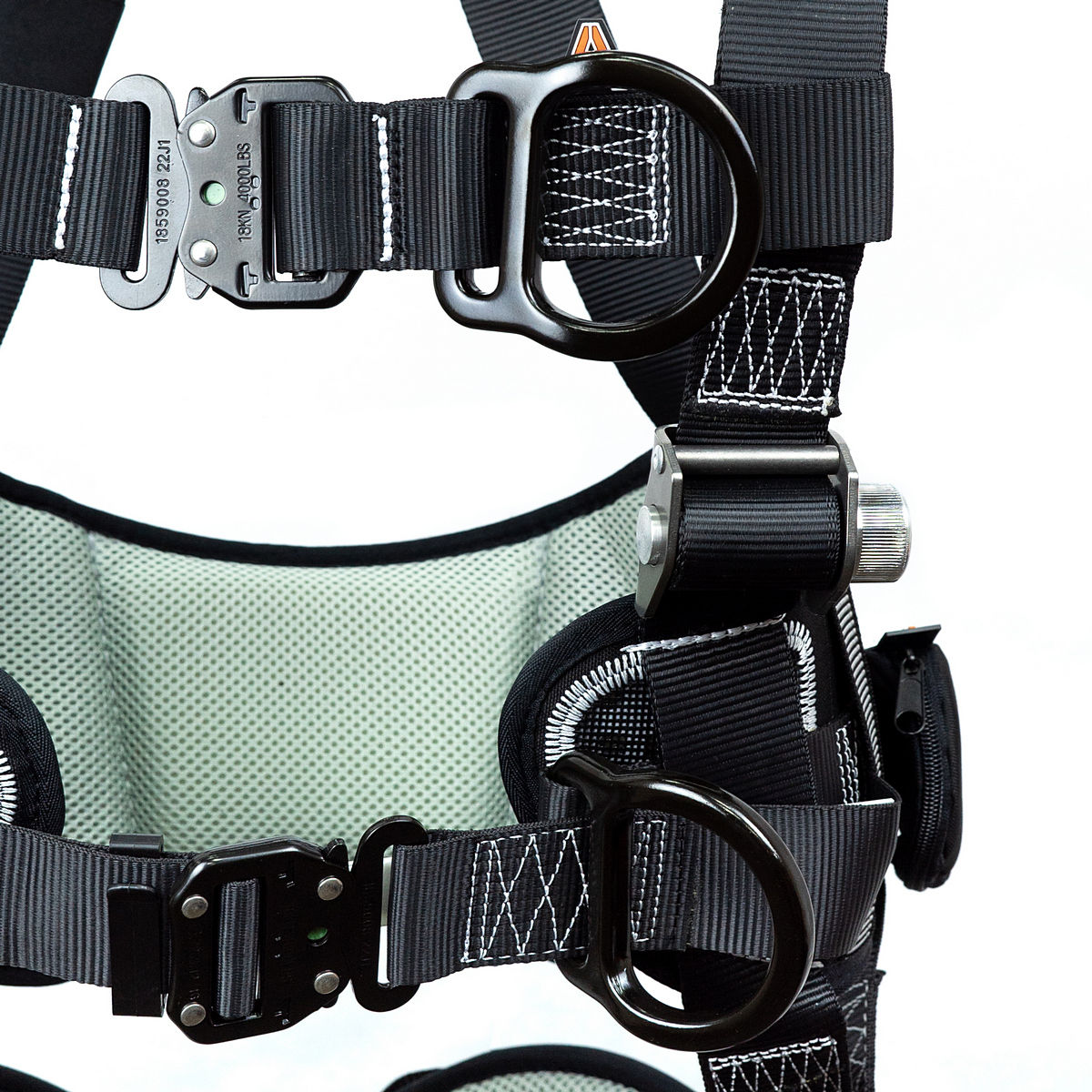 - две точки крепления страховочной подсистемы: D-образные кольца на груди и на спине;