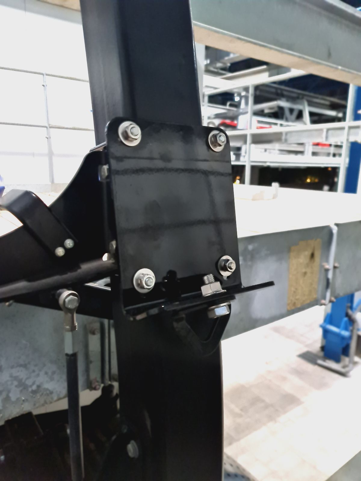 На начальном этапе были проведены тщательные обследования места монтажа и особенностей конструкции кабин, в ходе которых было установлено наличие препятствий для последующего внедрения анкеров. Для достижения этих целей были предложены обжимные пластины из нержавеющей стали, покрытые защитным слоем краски в тон оборудования. Первоначально предполагалось использование прямых крепежей, однако после испытаний выявились проблемы с недостаточным зазором между элементами подвижных механизмов и установленными пластинами.