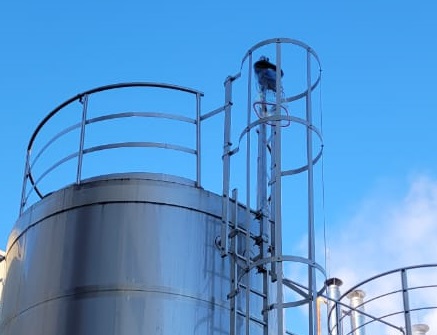 В качестве основного решения применялись вертикальные анкерные линии из нержавеющей стали. На верхней части лестницы установлена удлинительная консоль, которая позволяет обеспечить безопасный выход работника с лестницы. Анкерная точка располагается над работником, что позволяет удобно устанавливать захват ползункового типа на трос.