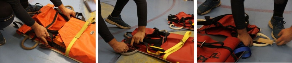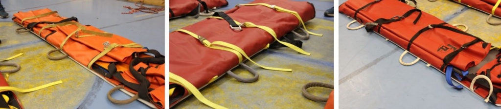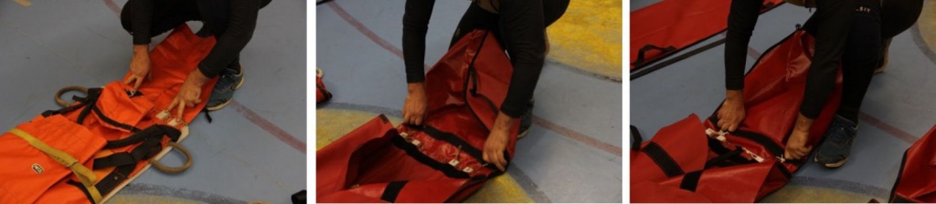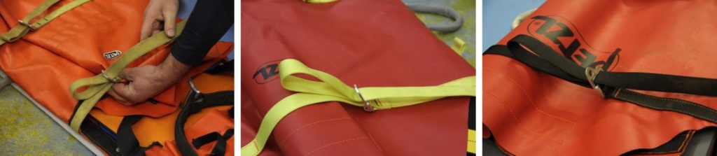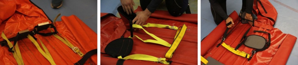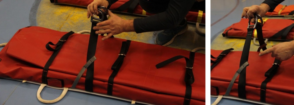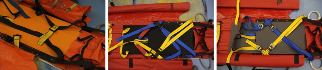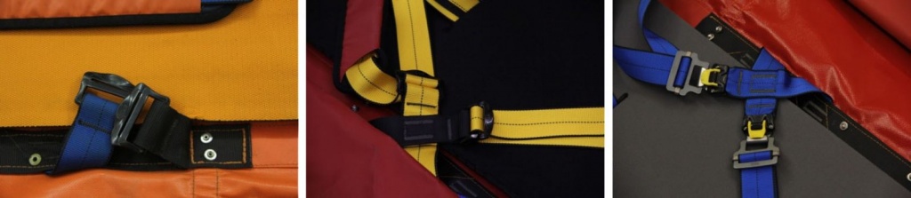 - Установлены быстросъемные пряжки в системе крепления пострадавшего к носилкам. Ремни в месте крепления пряжек ножных и грудных обхватов сшиты между собой с каждой стороны, что делает более удобной работу – пряжки не мешают друг другу.