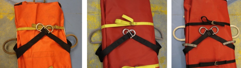 Первая модель носилок не имела специальных петель для крепления подводного оборудования. Для этого планировалось использовать ручки для переноски носилок. На второй модели появились две петли для бокового крепления баллонов относительно пострадавшего. Однако, как в первой, так и во второй модели балансировка носилок подводными грузами не предусматривала специальных креплений, и это вызывало большие сложности при выравнивании носилок в горизонтальное положение и увеличение фронтальной площади в связи с креплением балансировочных грузов за ручки носилок. В третьей модели носилок для этого с каждой стороны предусмотрено 4 петли для крепления подводного оборудования и грузов. Распределение петель на равном удалении по всей длине носилок дает возможность их удобной балансировки как в продольном, так и в поперечном направлении.
