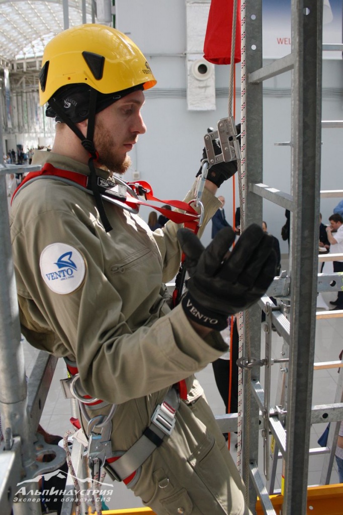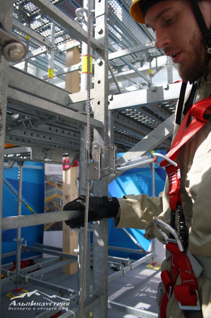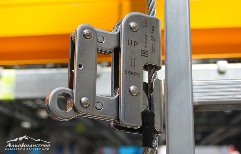 СИЗ ползункового типа перемещается вдоль анкерной линии и автоматически фиксируется на ней в случае падения пользователя.