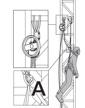 - Полиспаст, устройство для спуска, гибкая анкерная линия