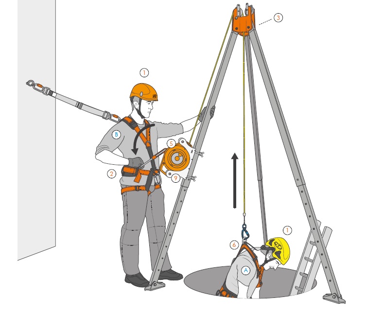 Спасательная система — это индивидуальная система защиты от падения с высоты, с помощью которой работник может спасти себя или других работников.